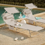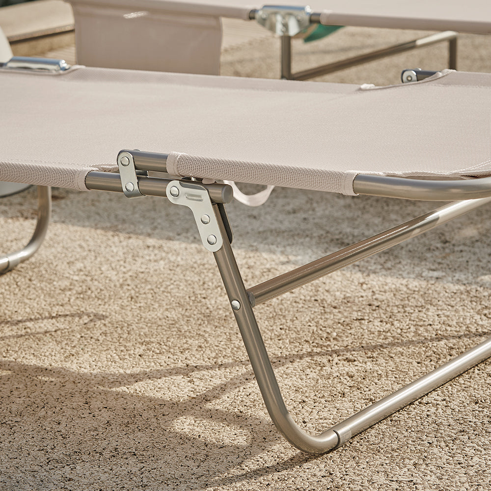 Pagaminti iš aukštos kokybės medžiagų, šie gultai turi tvirtą plieno rėmą, padengtą rūdims atspariu aliuminiu, ir UV spinduliams atsparų sintetinį audinį. Jie gali atlaikyti iki 150 kg svorį, o saugos užraktai apsaugo nuo netyčinio sulankstymo. Tad galite ramiai mėgautis saulės voniomis ar net nusnūsti.