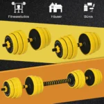 Mūsų 25 kg sveriančių hantelių ir štangos rinkinys yra universalus gaminys, galintis padėti ugdyti kūną. Surinkimas trunka vos kelias sekundes. Greitai perjunkite pratimus su hanteliu ir štanga, kad sutelktumėte dėmesį į raumenų jėgą, ištvermę ar širdies ir kraujagyslių sveikatą. Jis yra labai atsparus spaudimui ir trinčiai, o medžiaga iš geležies smėlio ir polipropileno užtikrina gaminio ilgaamžiškumą.