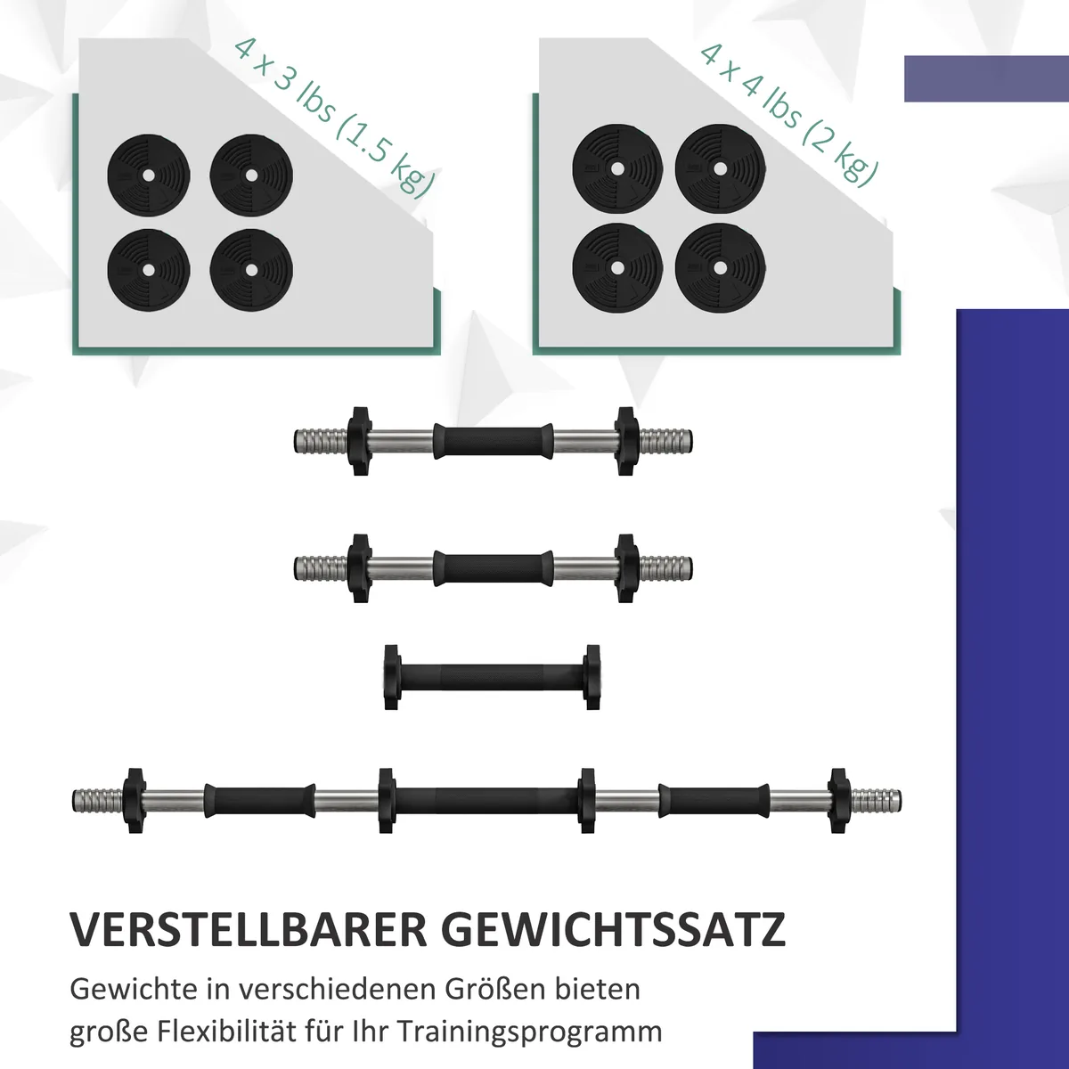 Pakeiskite savo namų treniruotę naudodami SPORTNOW 15 kg 2 viename hantelių rinkinį. Laisvai perjunkite hantelius ir štangą, kad galėtumėte keisti treniruočių rutiną ir pritaikyti svorį pagal savo jėgos lygį. Neslidžios rankenos ir saugūs užsegimai užtikrina saugią treniruotę. Plastikinis paviršius užtikrina tvirtą sukibimą ir apsaugo jūsų grindis. Nesvarbu, ar treniruojate treniruotę, ar raumenis – dabar visa galia!