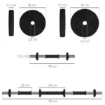 - Universalus hantelių rinkinys „du viename“: mūsų naujoviškas hantelių rinkinys tarnauja ir kaip hanteliai, ir kaip štanga, idealiai tinkantys įvairiems pratimams. Sklandžiai perjunkite režimus, kad efektyviai pasiektumėte treniruočių tikslus.