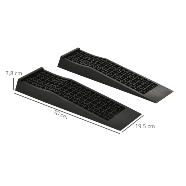 - ✔ Abiejų plastikinių rampų paviršius turi neslidžią ir rampų tekstūrą, kuri padidina trintį tarp padangų. saugumas