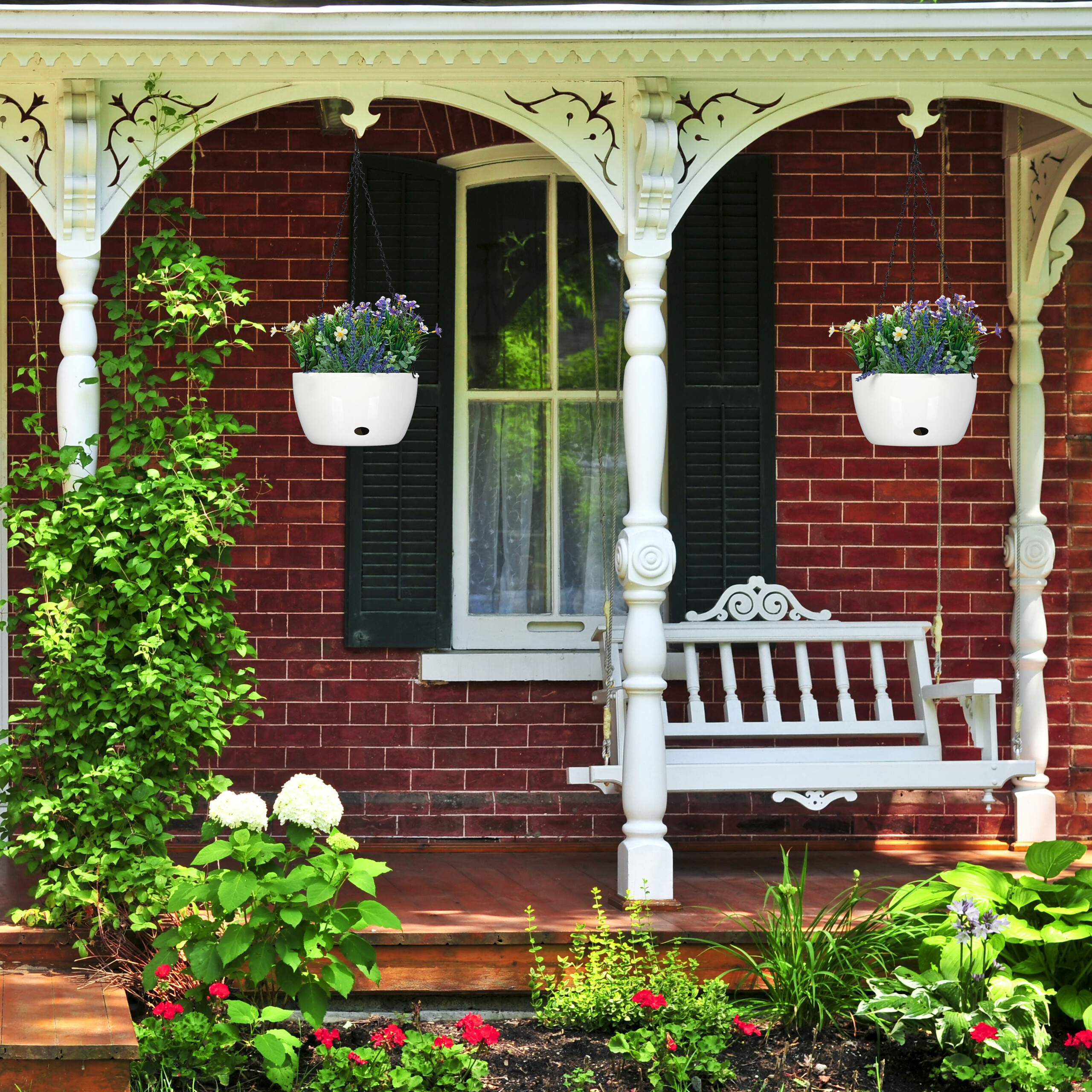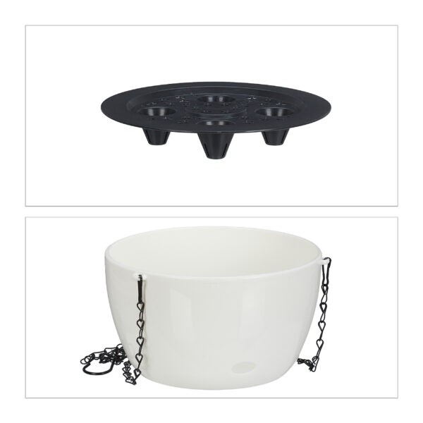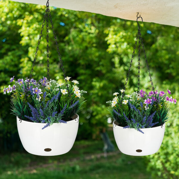 - Stilingas dizainas: Baltos spalvos vazonai su juoda grandinėle suteikia modernų akcentą, puikiai derantį tiek lauke, tiek viduje.