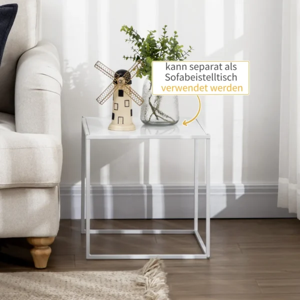 Atraskite elegantišką kavos staliuko komplektą iš HOMCOM – harmoningą funkcionalumo ir modernaus dizaino derinį. Šie du universalūs kavos staliukai ne tik idealiai tinka nuotraukoms, knygoms ir užkandžiams rodyti, bet ir gali būti sustumti kartu, kad sutaupytumėte vietos. Tvirtas plieninis rėmas ir aiški, kvadratinė svetainės stalo forma suteikia jūsų kambariui stilingą akcentą. Sukurkite kviečiančią atmosferą naudodami šį kosmoso stebuklą.