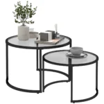 Šie sukraunami šoniniai stalai iš HOMCOM suteikia jūsų namams charakterio. Stalai gali būti naudojami kartu arba atskirai svetainėje, miegamajame, bendrabutyje ar biure. Dažytas plieninis rėmas ir grūdinto stiklo stalviršiai yra tvirti ir lengvai valomi. Tegul šie du stilingi ir funkcionalūs svetainės stalai lydės Jus laisvalaikiu.