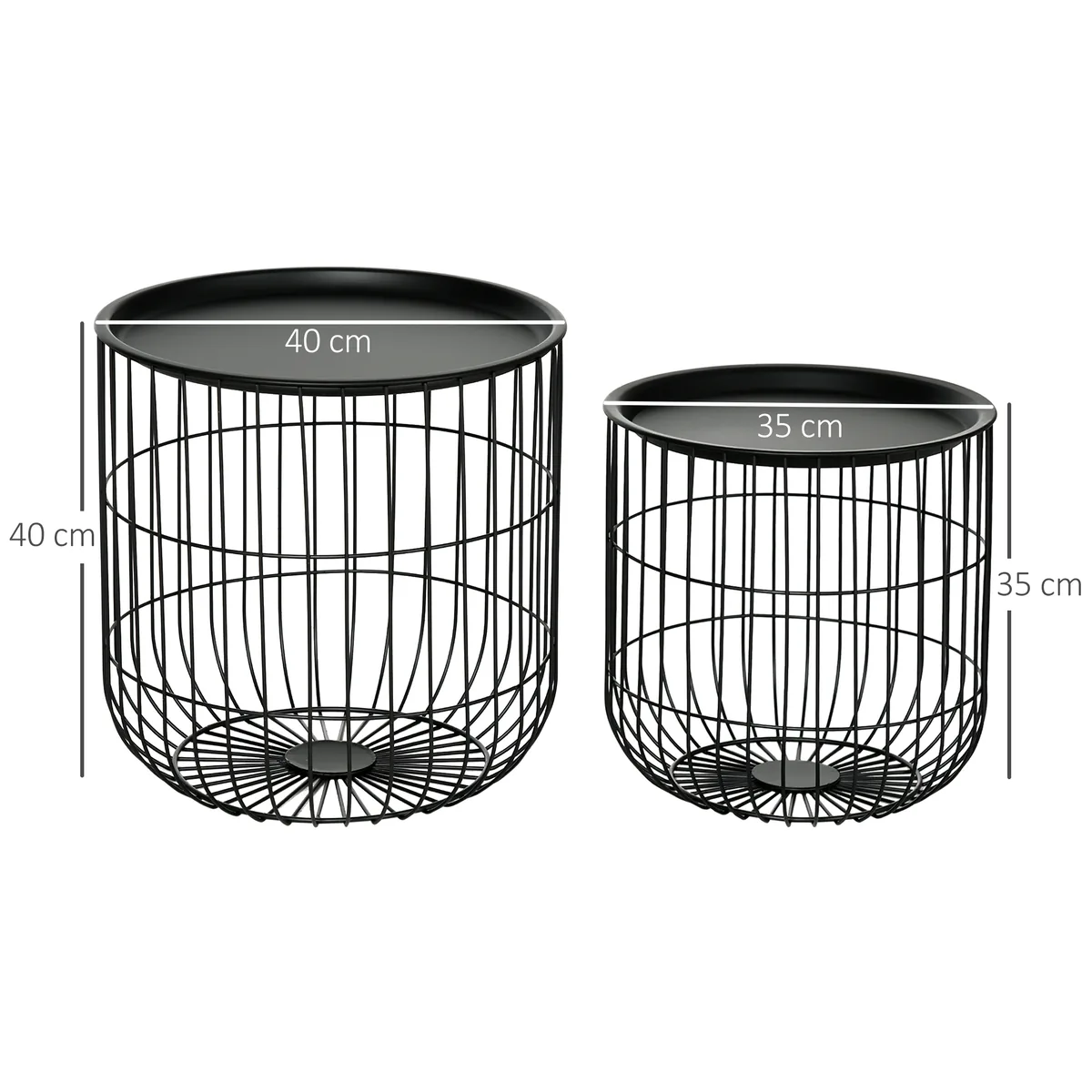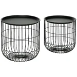 Su šiuo HOMCOM šoninio staliuko komplektu derinkite madingą „Scandi“ dizainą su saugykla savo svetainėje ar biure! Rinkinį sudaro mažas ir didesnis staliukas, kuriuos abu galima sudėti vienas į kitą, kad sutaupytumėte vietos. Dvi metalinių krepšelių stalai su juodu stalviršiu suteikia papildomos vietos knygoms, antklodėms, pagalvėms ir žaislams ir tuo pačiu yra vieta kavai. Pasiimkite daugiafunkcį 2 dalių rinkinį į namus ir nedelsdami atnaujinkite savo namus.