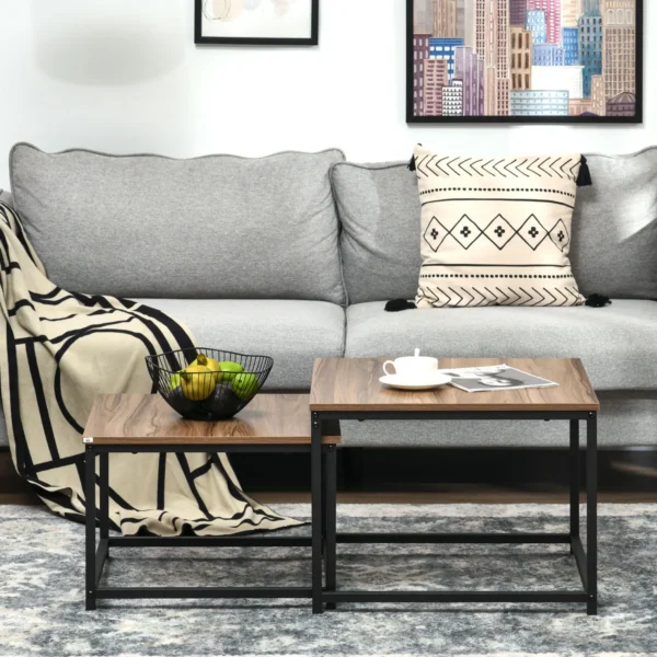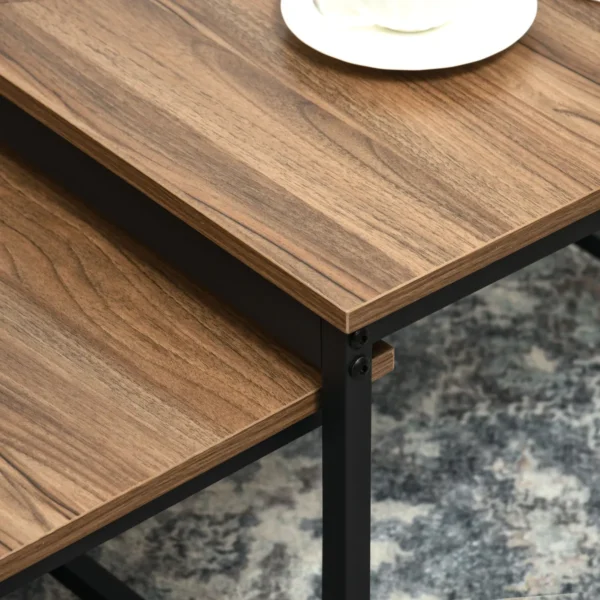 Atraskite žavų HOMCOM šoninio staliuko komplektą su populiariu pramoniniu dizainu. Išnaudokite staliukų universalumą kaip du atskirus šoninius staliukus arba sujunkite juos, kad sukurtumėte stilingą kavos staliuką. Graži medinė išvaizda ir tvirtas plieninis rėmas suteikia jūsų kambariui šiuolaikiško žavesio. Reguliuojamos kojelės užtikrina stabilumą ant nelygių grindų. Paverskite savo svetainę stilinga komforto zona su šiuo unikaliu šoninio staliuko komplektu!