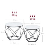 Praturtinkite savo namų interjerą elegancija ir funkcionalumu su šiuo išskirtiniu kavos staliukų rinkiniu. Šis modernus ir stilingas rinkinys puikiai tiks tiek svetainėje, tiek biure, suteikdamas erdvei šiuolaikišką akcentą.