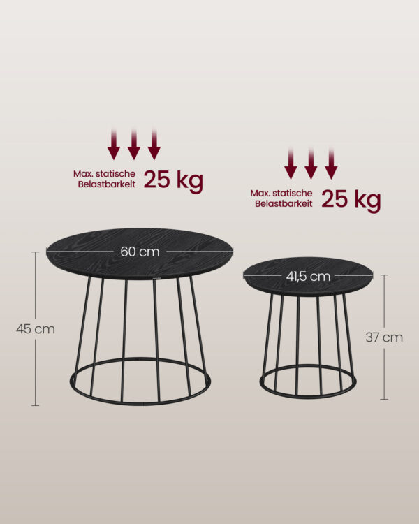 Šis kavos staliukų rinkinys yra puikus pasirinkimas tiems, kurie vertina stilių ir funkcionalumą. Juodmedžio juoda spalva suteikia elegancijos, o tvirta konstrukcija užtikrina ilgaamžiškumą. Nesvarbu, ar naudojate juos kaip kavos staliukus, ar kaip papildomą vietą dekoratyviniams elementams, šie staliukai tikrai taps jūsų namų akcentu.