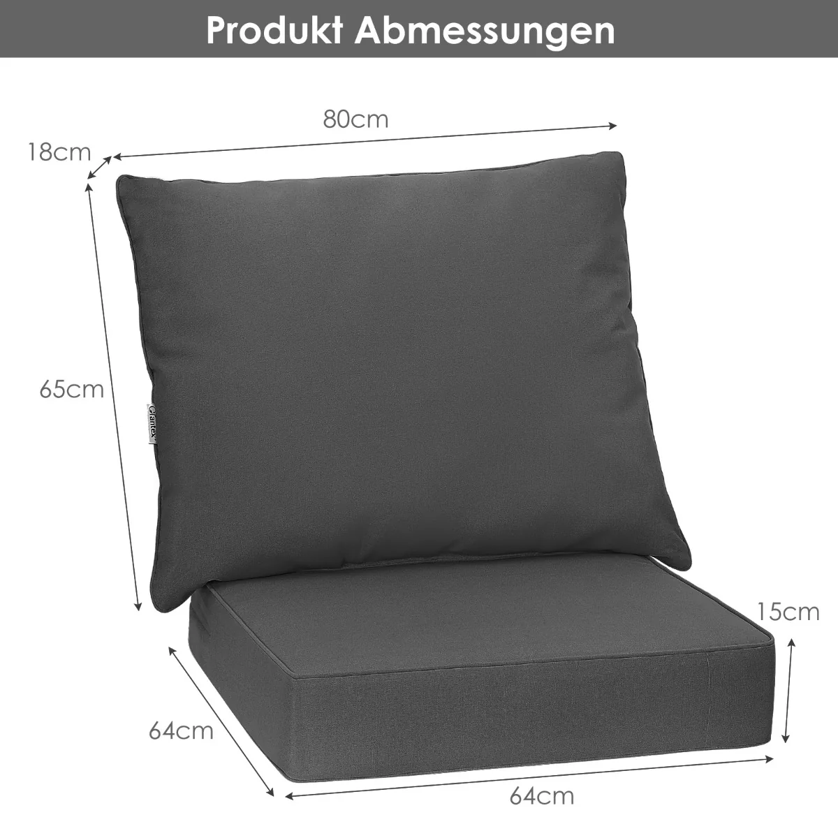 - Sėdynės pagalvėlės matmenys: 64 cm x 64 cm x 15 cm (I x P x A)