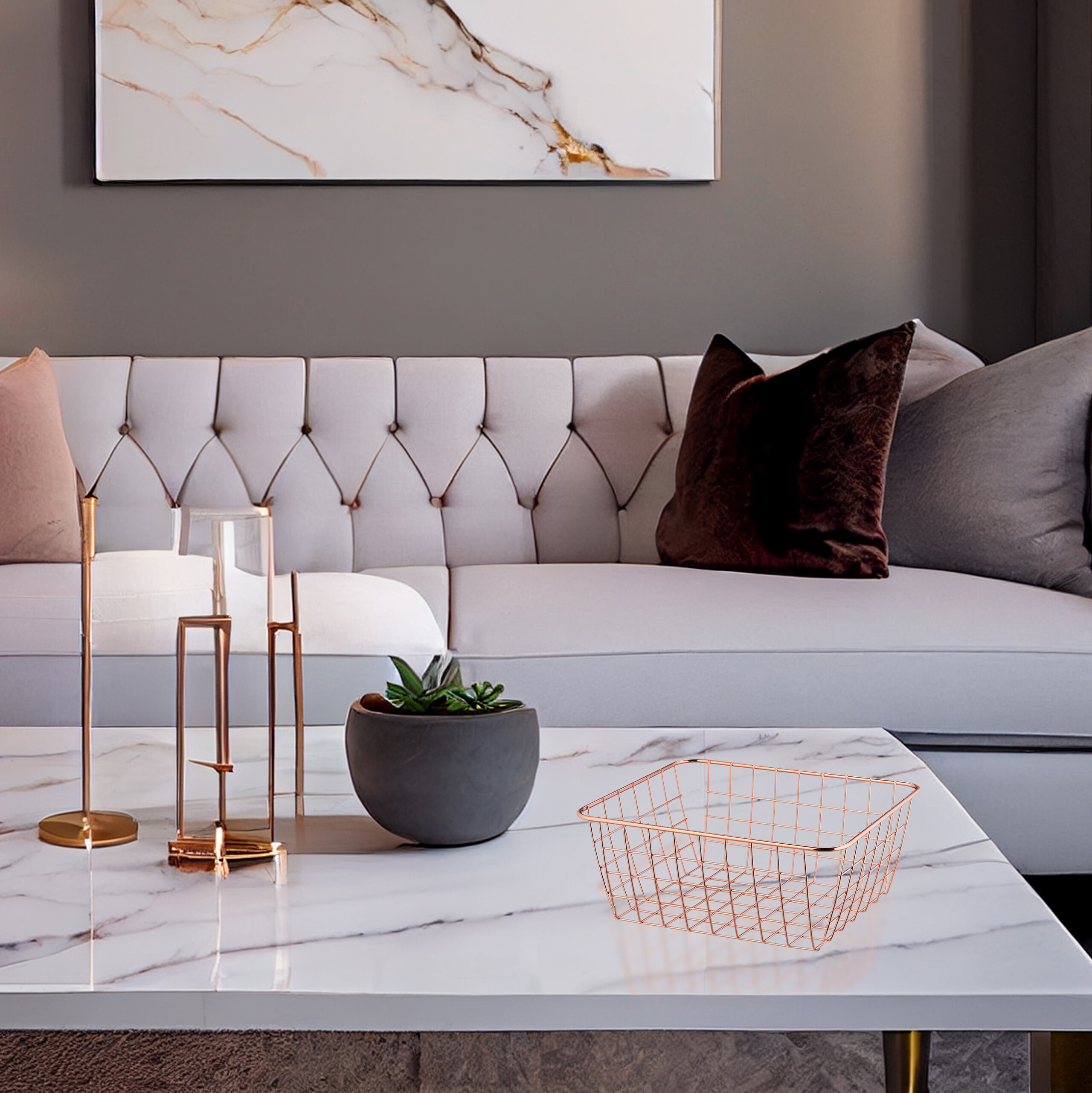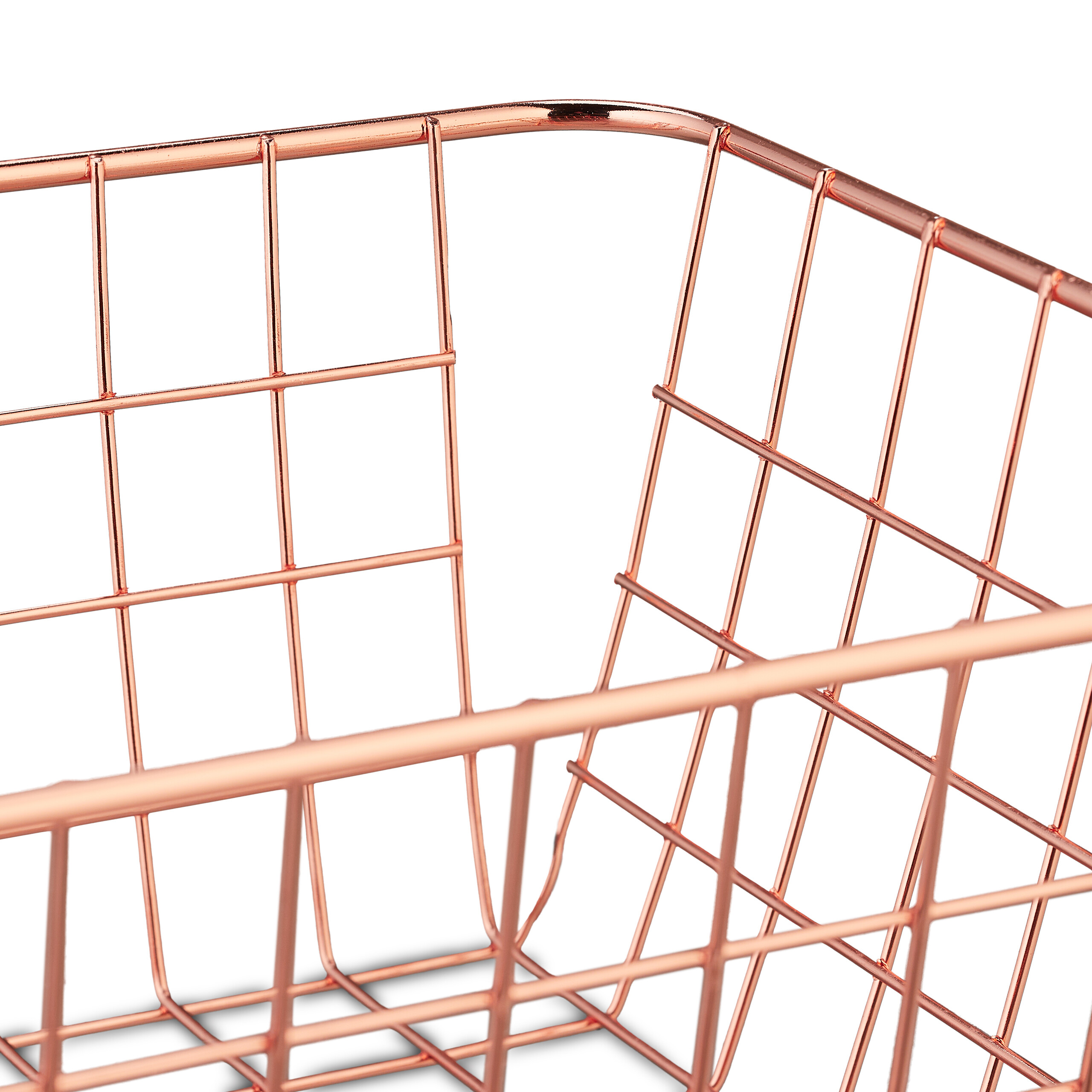 - Stilingas dizainas: Elegantiška rožinio aukso spalva ir tinklinė struktūra suteikia krepšeliams išskirtinį ir modernų išvaizdą, kuris puikiai dera bet kuriame kambaryje.