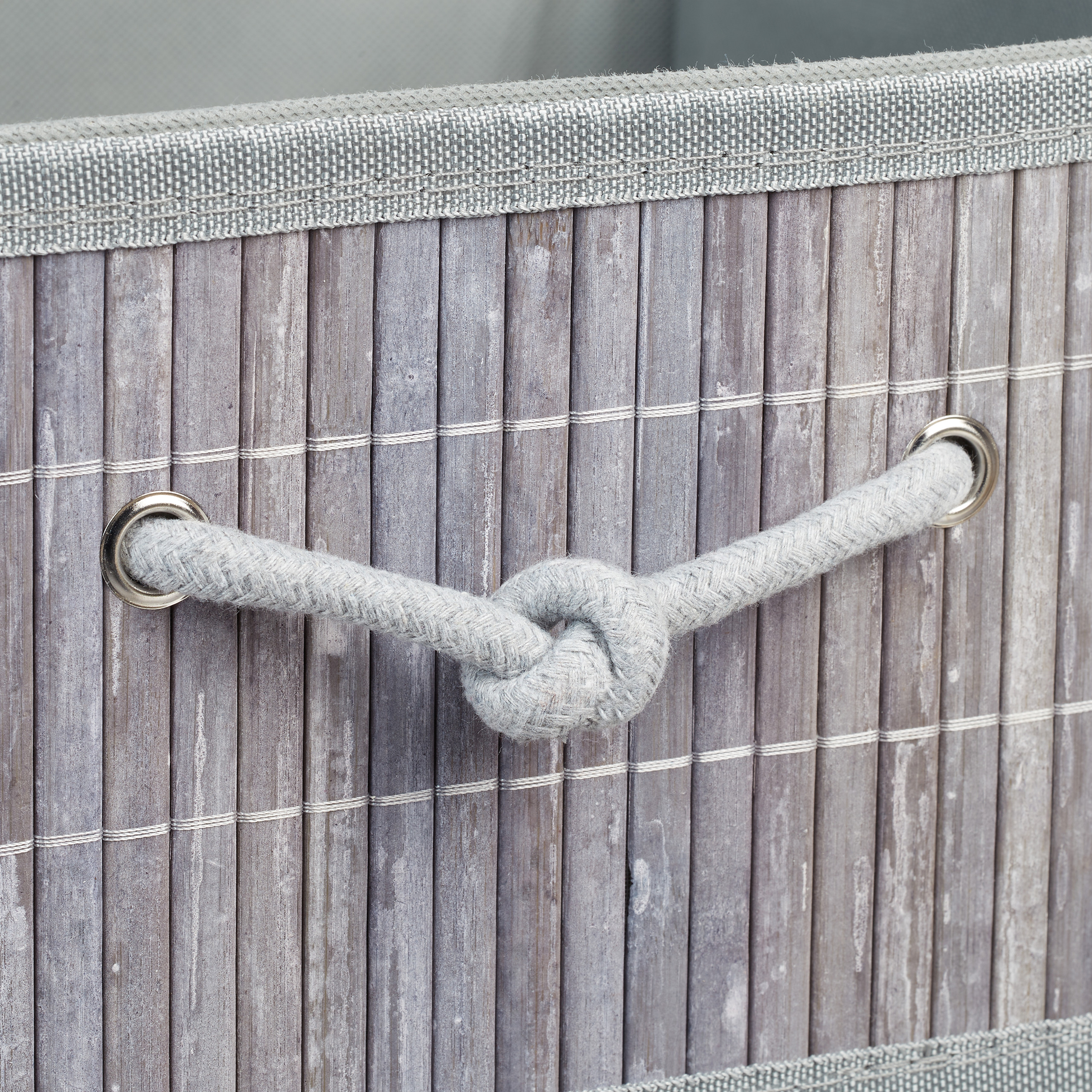 • Aukštos Kokybės Medžiagos: Pagaminti iš bambuko ir vilnos, šie krepšeliai yra atsparūs drėgmei, todėl puikiai tinka naudoti drėgnose patalpose.