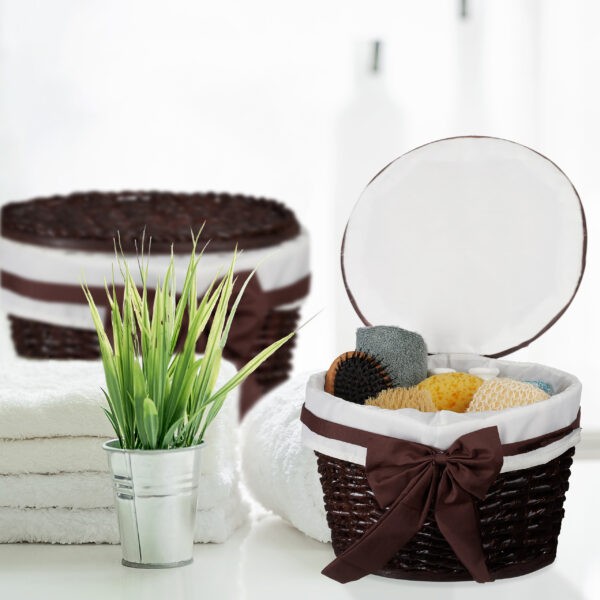 Praturtinkite savo vonios interjerą su šiuo elegantišku ir funkcionaliu pintų krepšelių rinkiniu. Šie dekoratyviniai krepšeliai ne tik suteiks jūsų erdvei estetinį žavesį, bet ir padės tvarkingai laikyti įvairius vonios reikmenis bei smulkius lobius.