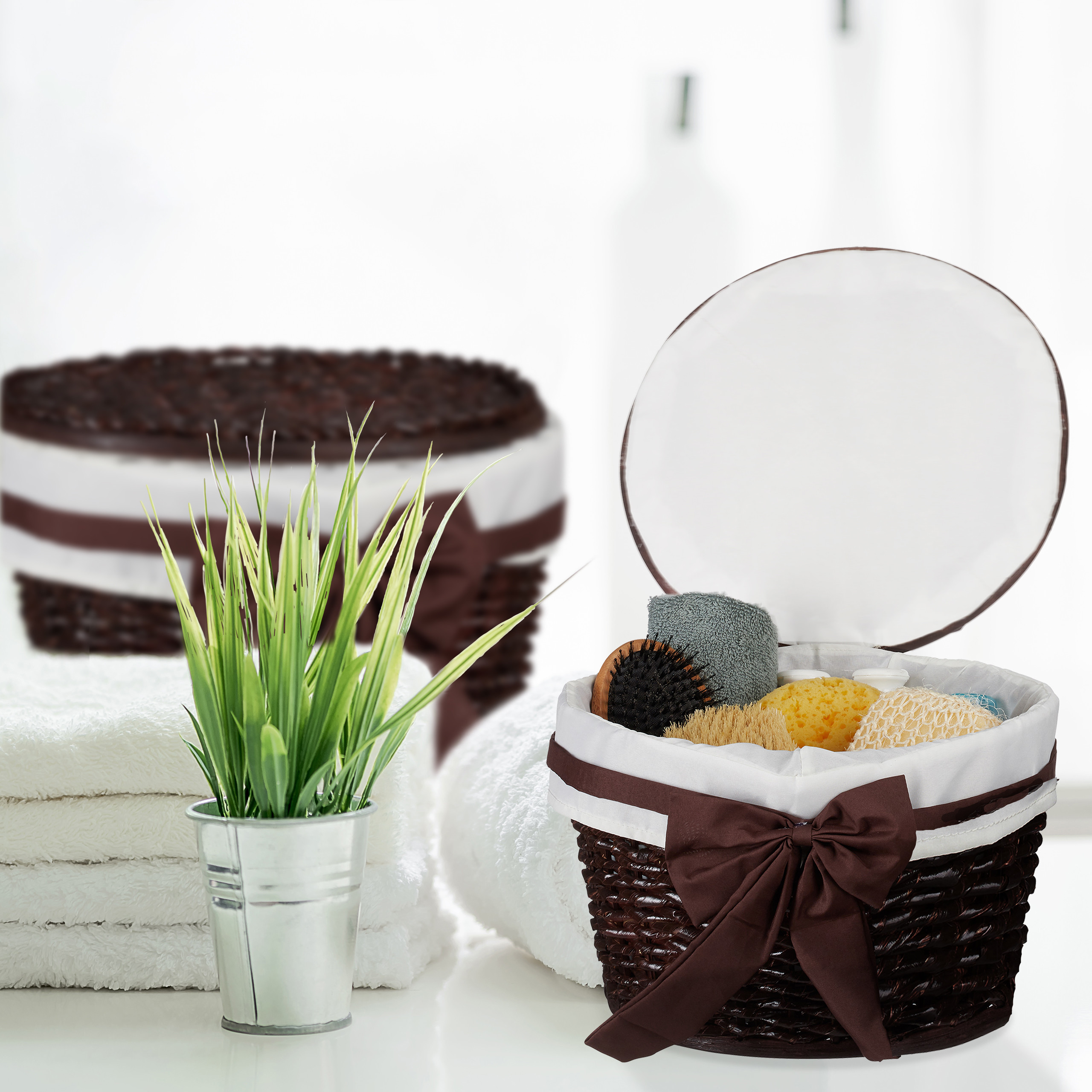 - Praktiškumas: Krepšeliuose telpa įvairūs vonios reikmenys, o atverčiamas dangtis leidžia juos laikyti uždarytus, užtikrinant tvarką ir privatumą.