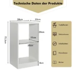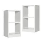 Rinkinys iš 2 lentynų 38x33x72,5 cm baltos spalvos suteiks papildomą vietą knygoms, daiktams ir dekoracijoms įvairiose jūsų kambario erdvėse. Šios lentynos puikiai tinka tiek naudoti kartu, tiek atskirai kaip naktiniai ar šoniniai staliukai.