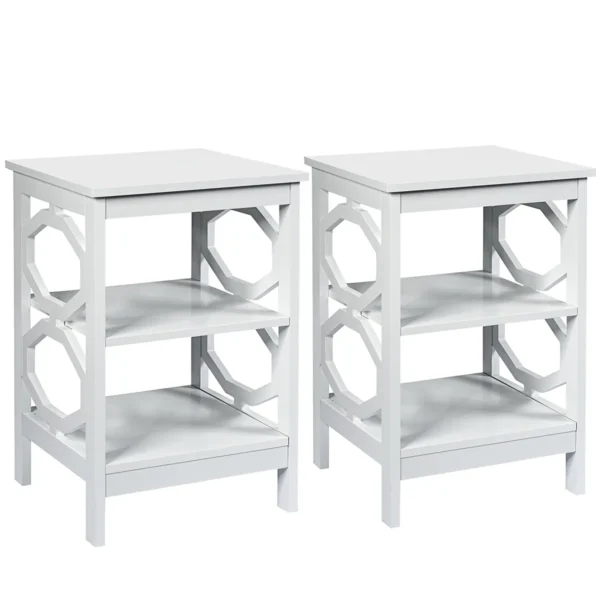 Rinkinys iš 2 naktinių staliukų baltos spalvos yra praktiškas pasirinkimas jūsų miegamajam arba svetainei. Šie staliukai, pagaminti iš MDF medžiagos, pasižymi patvarumu ir funkcionalumu. Dėl kompaktiškų matmenų 40x40x61 cm jie lengvai priderinami prie skirtingų interjerų.