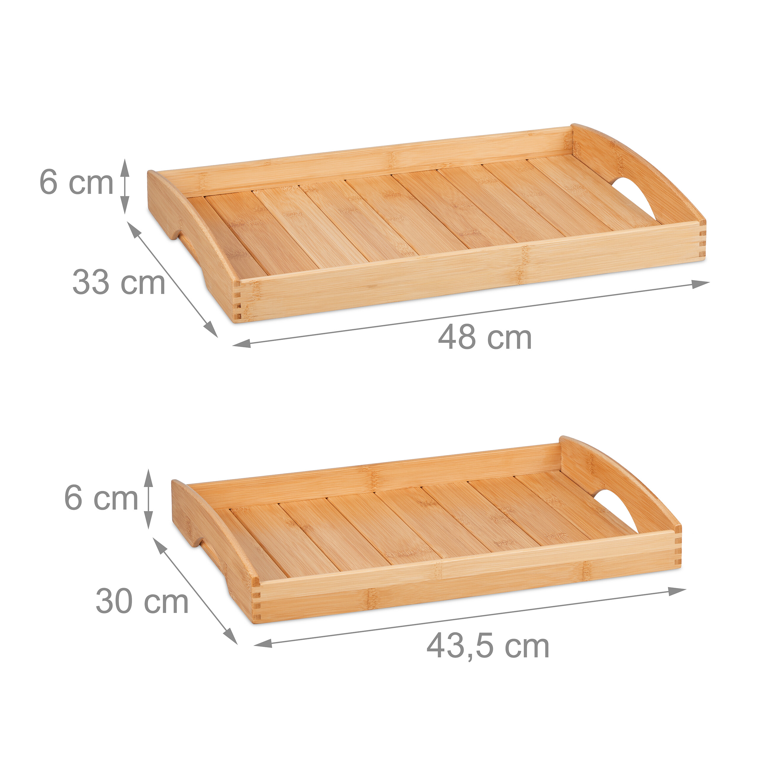 - Skirtingi dydžiai: Rinkinį sudaro du skirtingų dydžių padėklai, kurie puikiai tiks įvairiems serviravimo poreikiams.