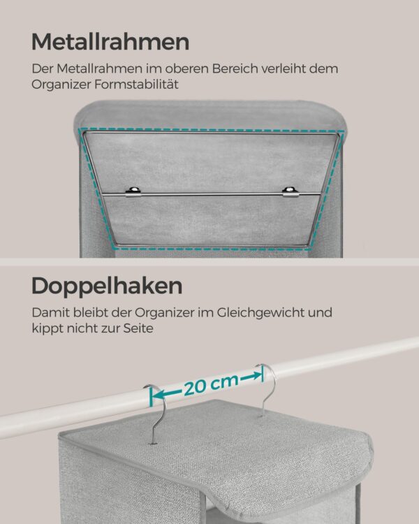 Rinkinys iš 2 pakabinamų medžiaginių lentynų 30x30x90cm., pilkos spalvos