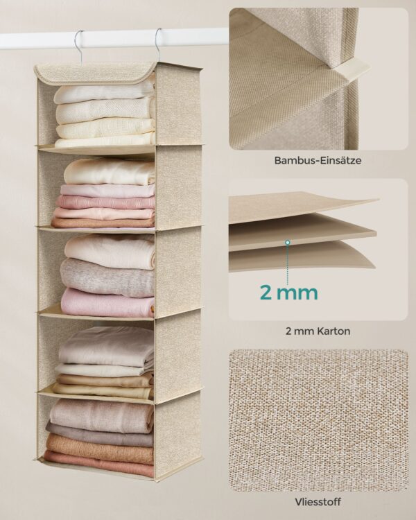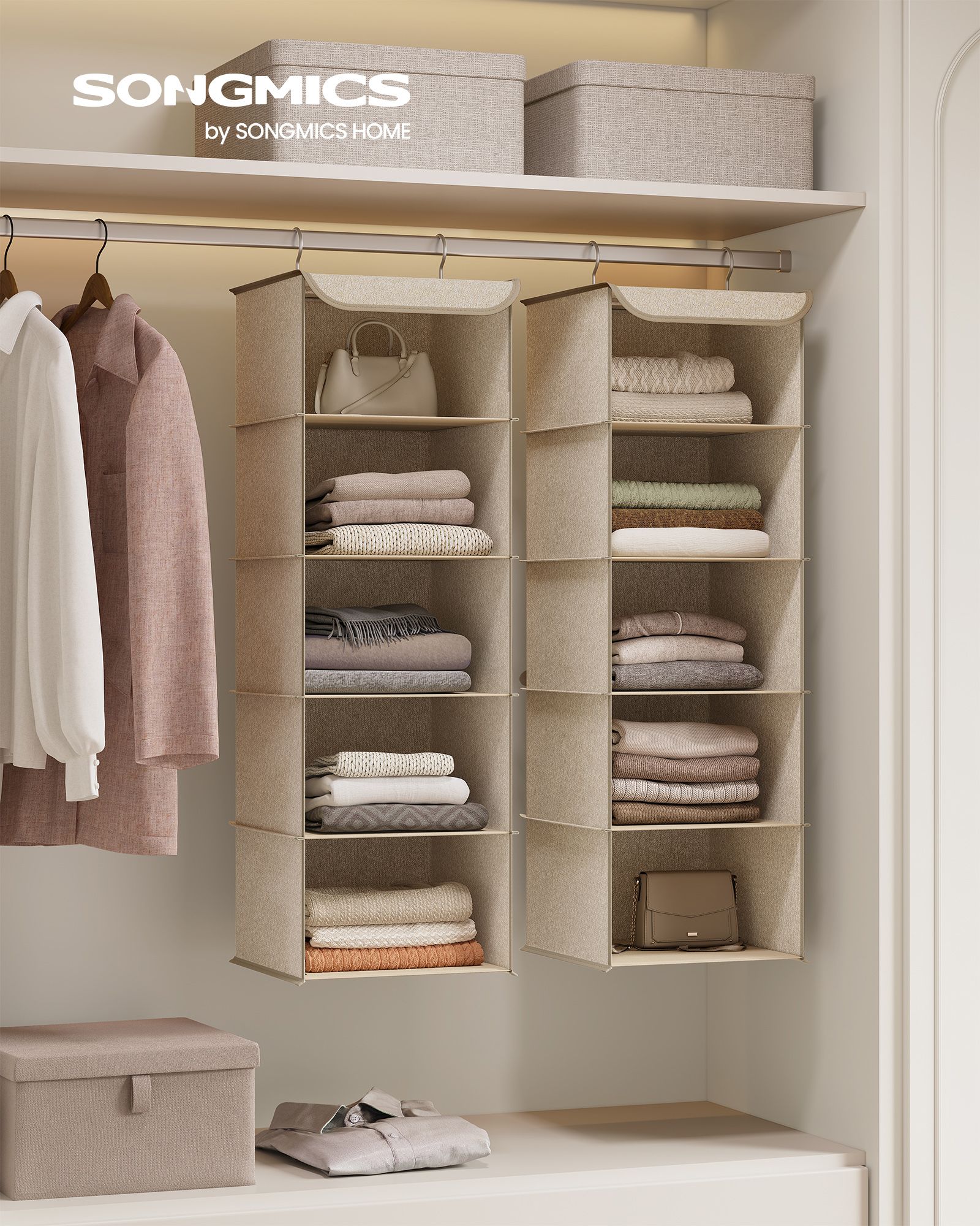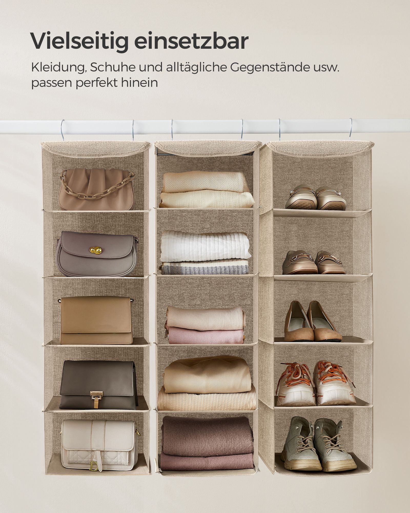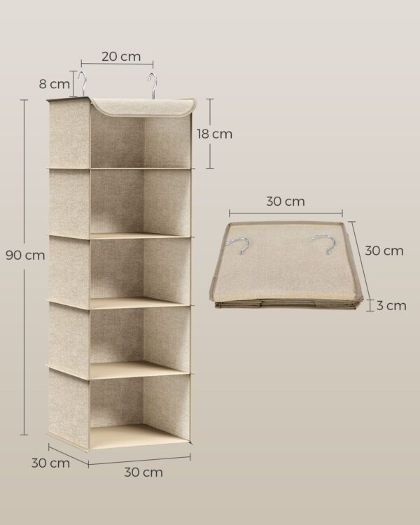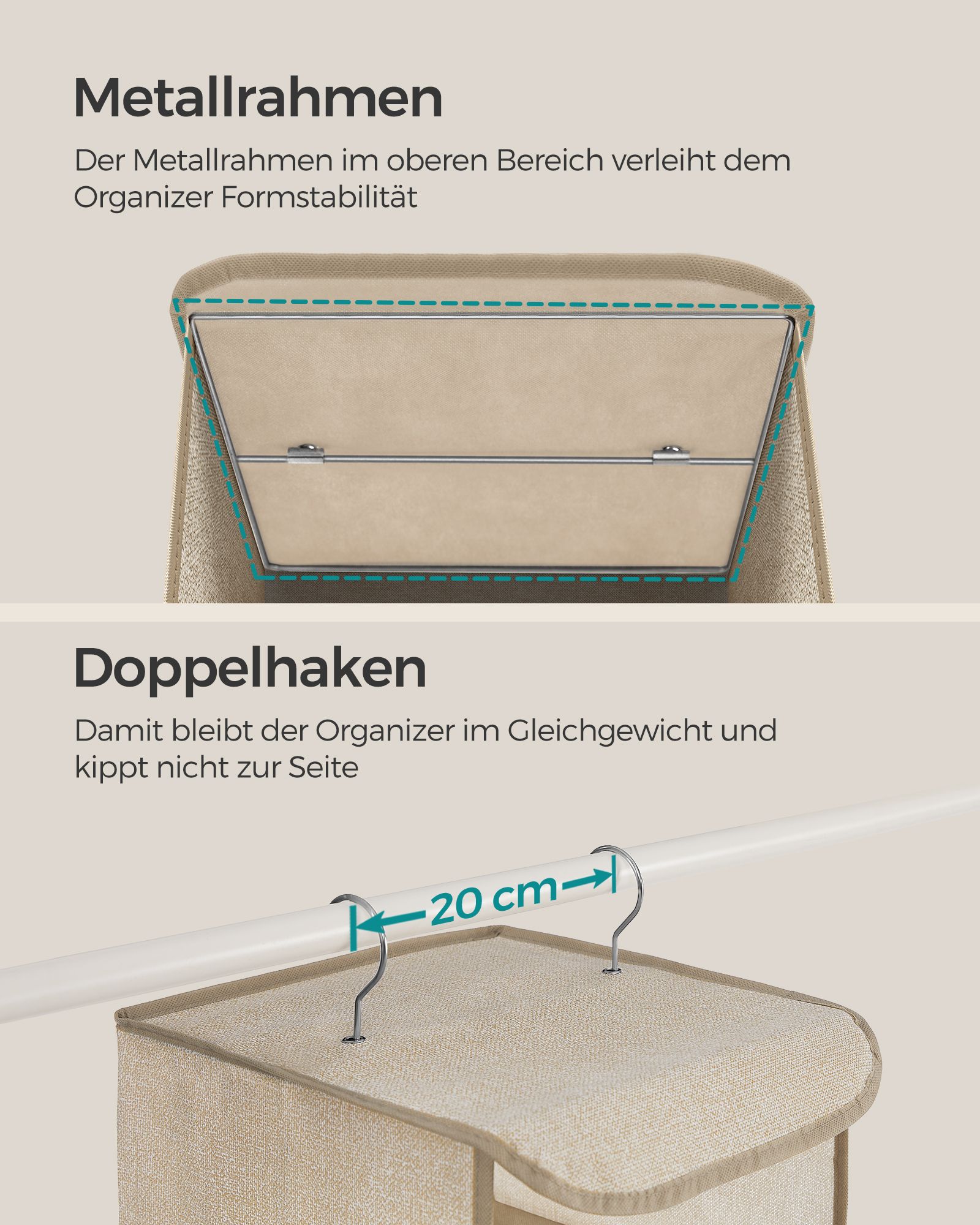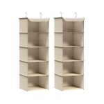 Rinkinys iš 2 pakabinamų medžiaginių lentynų 30x30x90cm., smėlio spalvos