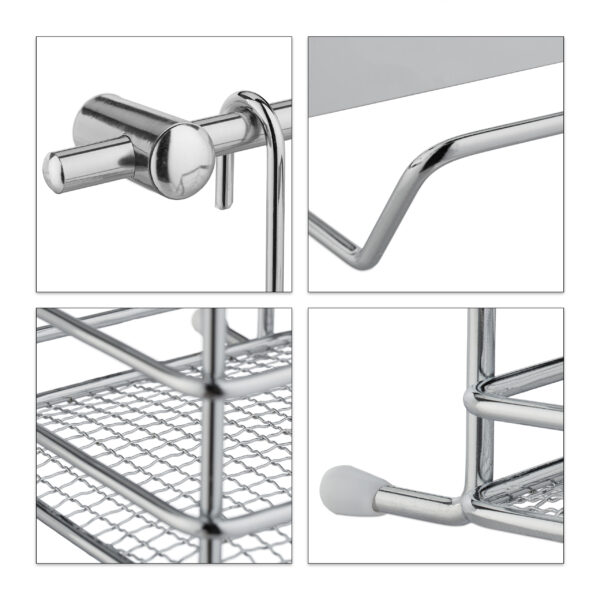 Rinkinys iš 2 pakabinamų virtuvės lentynų ir jų priedų, sidabrinės spalvos