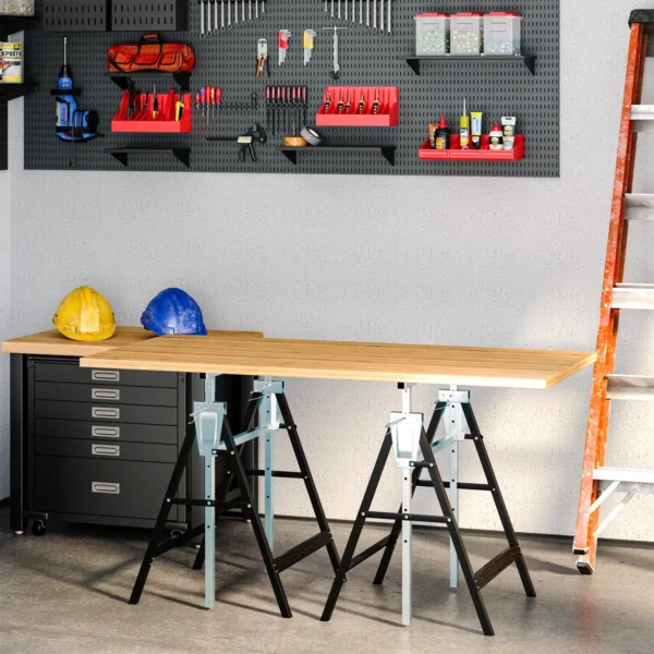 Pjovimas, pjovimas, dažymas, klojimas, darbas. Mūsų pastolių estakadų rinkinys iš 2 yra idealus pagalbininkas amatininkams ir „pasidaryk pats“ entuziastams, norint efektyviai atlikti remonto ir renovacijos darbus. Tvirtas Q195 plienas suteikia pagrindą didelei 200 kg apkrovai, todėl galite pakelti ir sunkias statybines medžiagas. Galite lanksčiai reguliuoti darbinį aukštį nuo 80 cm iki 130 cm ir pritvirtinti apsauginiais užraktais.