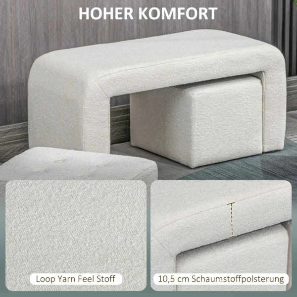 3 HOMCOM kėdžių rinkinys suteikia papildomų sėdimų vietų ir suteikia jūsų namams stilingų akcentų. Prašmatni balta spalva ir žavūs mygtukų siūlai reiškia, kad jis lengvai įsilieja į bet kokį interjero stilių ir padidina bet kurios gyvenamosios erdvės eleganciją bei modernumą. Naudodami HOMCOM galite paversti savo namus jaukiais namais.