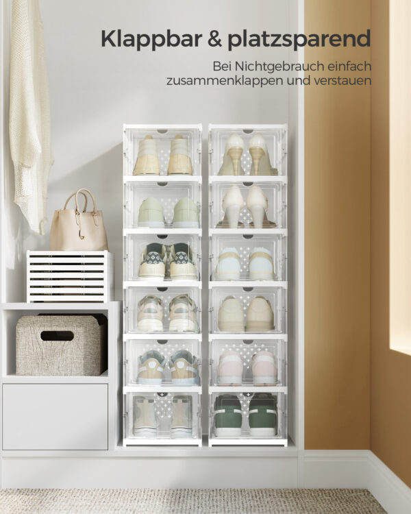 Pristatome elegantišką ir funkcionalų sprendimą jūsų batų laikymui – rinkinį iš dviejų skaidrių batų spintelių. Šios spintelės ne tik padės palaikyti tvarką jūsų namuose, bet ir suteiks modernų akcentą jūsų interjerui.