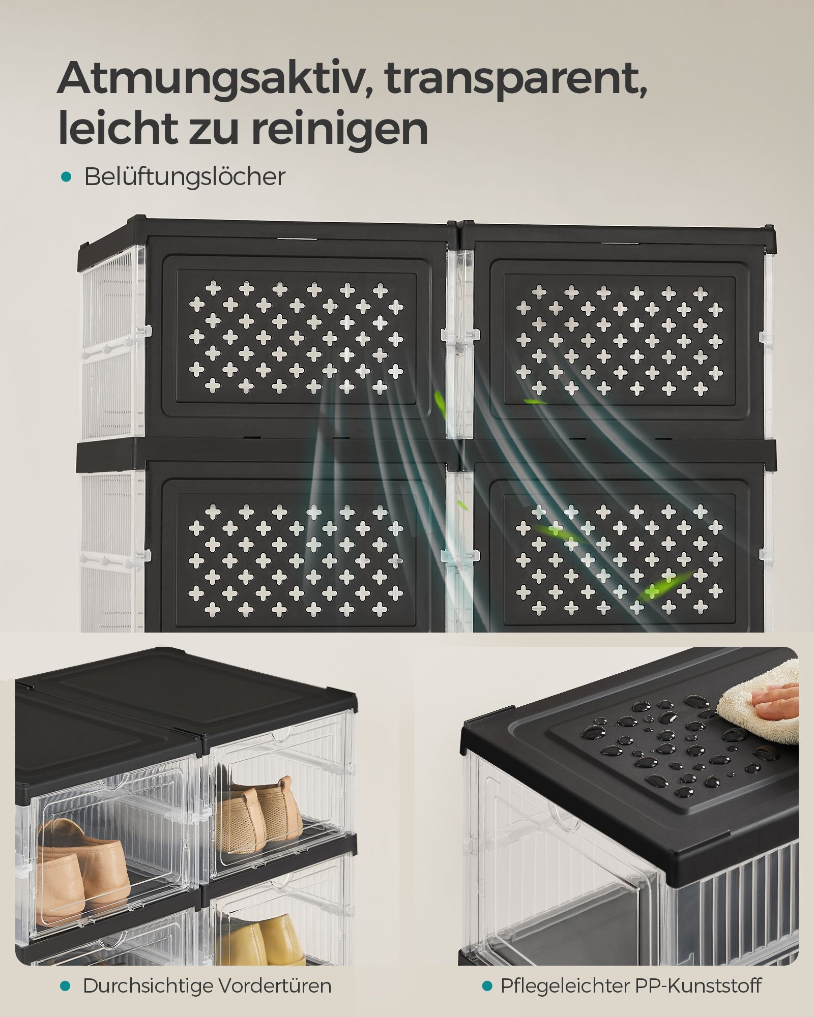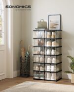 Pristatome jums modernų ir stilingą sprendimą batų laikymui – rinkinį iš dviejų skaidrių batų spintelių. Šios spintelės ne tik padės tvarkingai laikyti jūsų batus, bet ir suteiks jūsų interjerui šiuolaikišką išvaizdą. Juodos spalvos dizainas puikiai derės prie bet kokio interjero stiliaus.