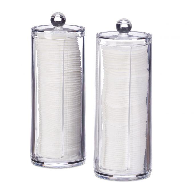 Rinkinys iš 2 skaidrių organizatorių medvilniniams diskams laikyti 20x7cm.