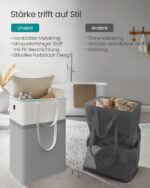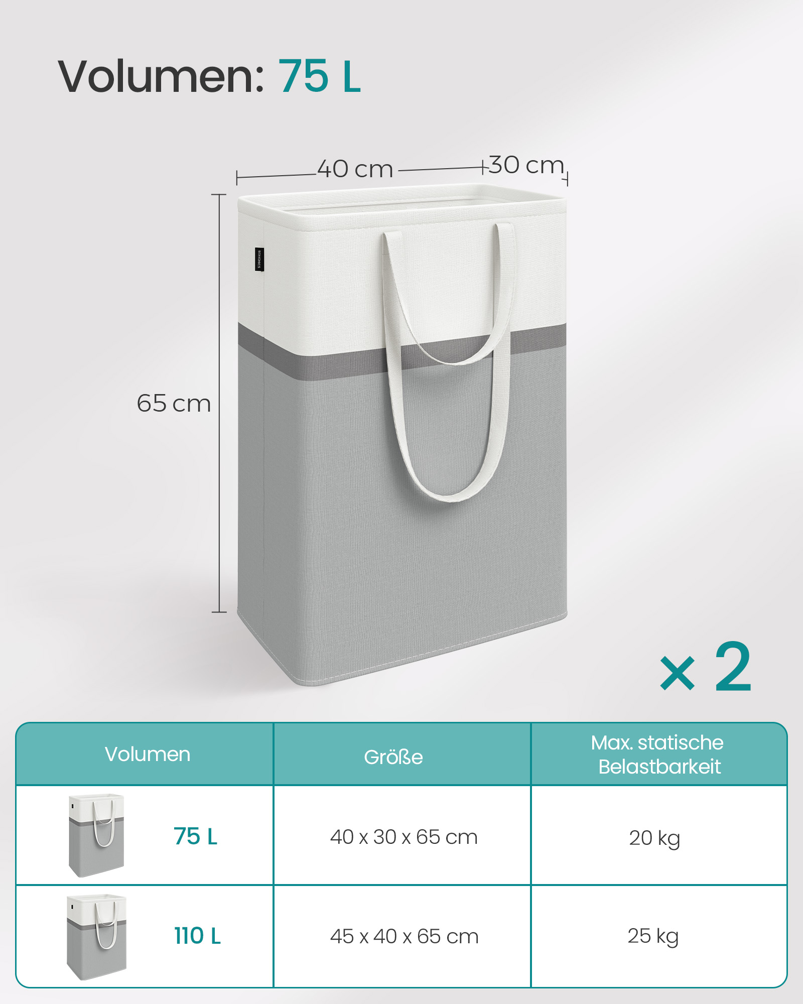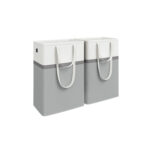 Rinkinyje esantys du krepšeliai leidžia patogiai rūšiuoti skalbinius, o jų talpa – net 75 litrai – užtikrina, kad tilps visi jūsų šeimos skalbiniai. Pasirinkite šį rinkinį ir mėgaukitės tvarkinga bei stilinga namų aplinka!