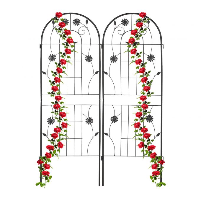 Praturtinkite savo sodą elegancija ir funkcionalumu su šiuo dviejų dalių sodo grotelių rinkiniu. Šios dekoratyvinės gėlių grotelės yra puikus pasirinkimas vijokliniams augalams, suteikiant jiems reikiamą atramą ir tuo pačiu prisidedant prie jūsų sodo estetikos.