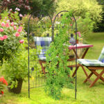 - Estetika: Lenktos formos suteikia grotelėms dekoratyvinį akcentą, kuris puikiai dera su bet kokiu sodo dizainu.