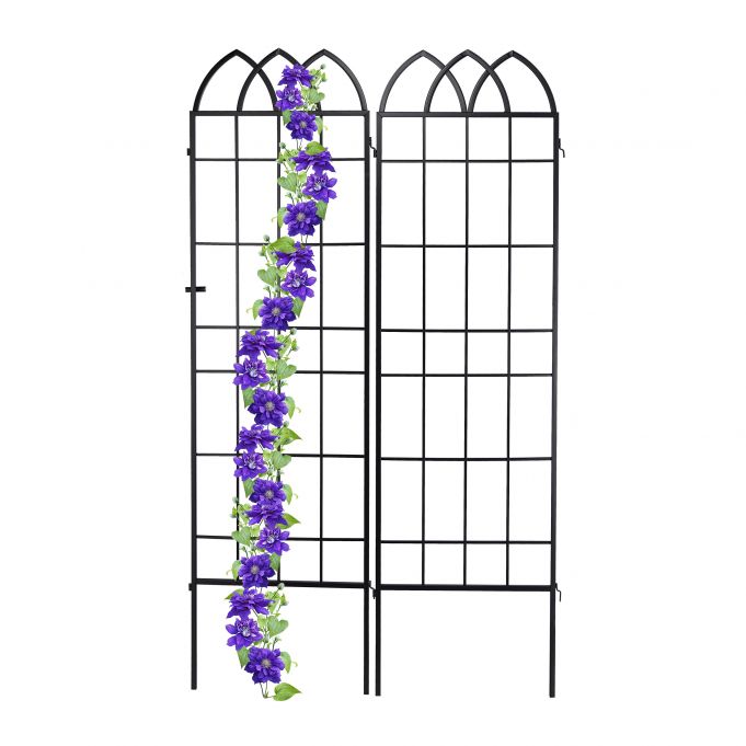 Praturtinkite savo sodą elegancija ir funkcionalumu su šiuo dviejų dekoratyvinių sodo grotelių rinkiniu. Pagamintos iš aukštos kokybės metalo, šios juodos spalvos grotelės yra ne tik patvarios, bet ir stilingos, puikiai tinkančios įvairių vijoklinių augalų palaikymui ir eksponavimui.
