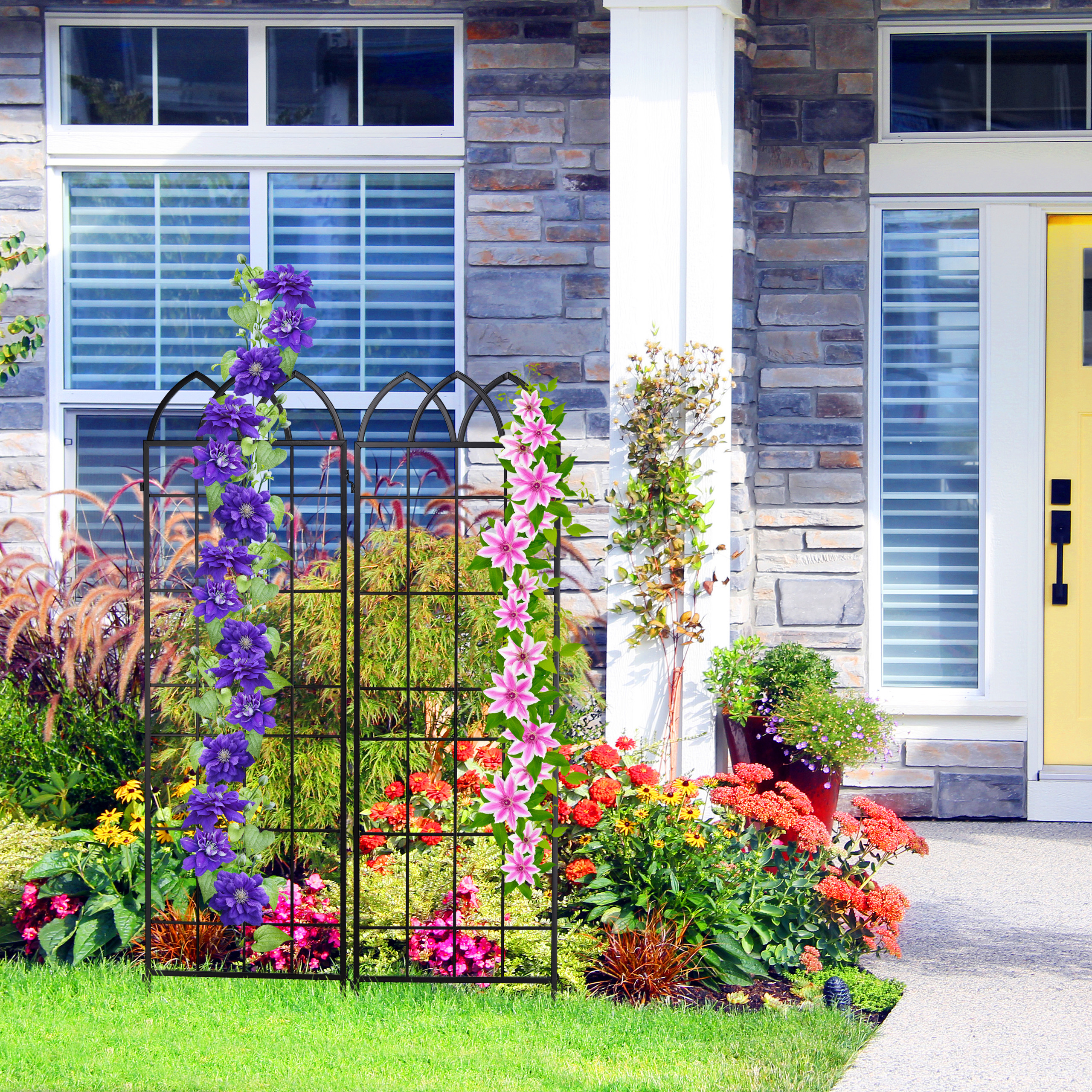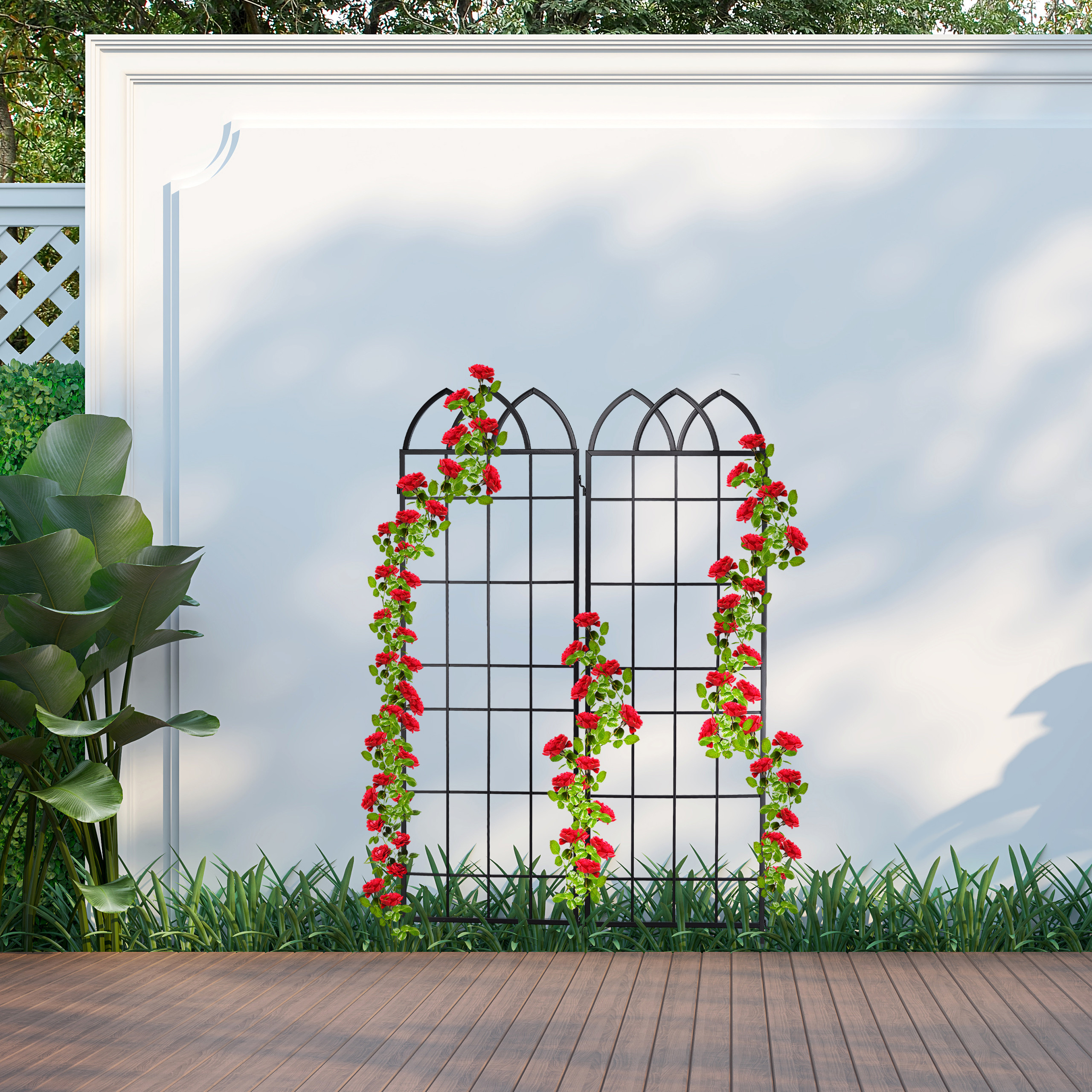- Universalumas: Idealiai tinka rožėms, klematisams ar amžinai žaliuojančioms gebenėms, šios grotelės suteikia jūsų augalams tvirtą atramą ir leidžia jiems augti visu savo puošnumu.