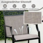 - Rinkinį sudaro 2 sodo kėdės su metaliniu rėmu, atspariu deformacijai.