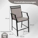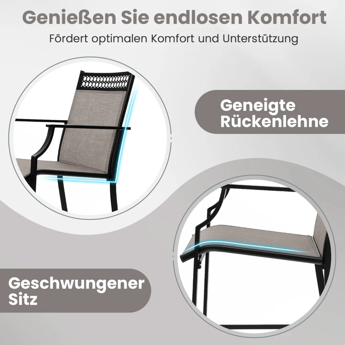 Rinkinys iš 2 sodo kėdžių (66x62x114 cm) puikiai tinka lauko ir vidaus erdvėms. Kėdės pagamintos iš tvirto metalo ir neplyšiamo audinio, užtikrinant patvarumą ir komfortą. Tinkamos naudoti sode, balkone, virtuvės saloje ar kavinėje.