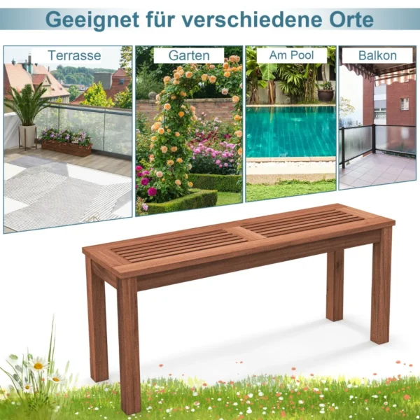 Rinkinys iš 2 sodo suoliukų, pagamintų iš medžio masyvo, skirtas naudoti tiek lauke, tiek viduje. Suoliukai turi 100 x 30,5 x 47 cm matmenis, todėl puikiai tinka poilsiui sode, kieme ar terasoje. Natūrali šviesiai ruda spalva dera prie įvairios aplinkos.