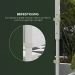 Įkvėpkite naujos gyvybės į savo sodo paviljoną su Outsunny paviljono šoninėmis sienomis! Šis dviejų šoninių sienelių rinkinys tinka daugumai 3 x 3 m arba 3 x 6 m išskleidžiamų pavėsinių ir yra pagamintas iš patvaraus Oksfordo poliesterio. Dviejų sluoksnių susukami langai šviesiems ir durys su užtrauktuku, kad būtų lengva prieiti. Dėl specialių dirželių tvirtinimas yra vaikiškas žaidimas. Atkreipkite dėmesį, kad į komplektą įeina tik šoninės sienelės: pavėsinės rėmas neįeina.