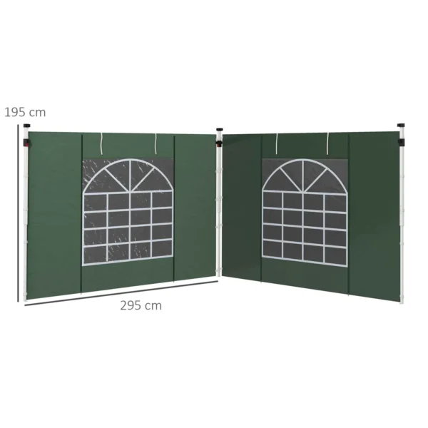 Rinkinys iš 2 šoninių pavėsinės sienų Outsunny 295x195cm., žalios spalvos