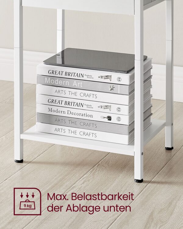 - Maksimali apatinės lentynos statinė apkrova: 9 kg – puikiai tinka knygoms ar dekoratyviniams elementams.