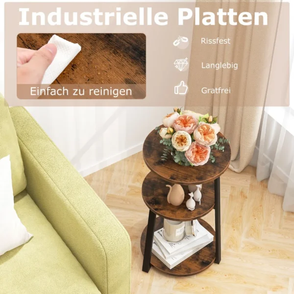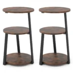 Rinkinys iš 2 šoninių staliukų 40,5x38x62cm rudos ir juodos spalvos – praktiškas sprendimas papildomai erdvei gyvenamajame kambaryje ar miegamajame. Šie metaliniai staliukai su trimis pakopomis suteikia daug vietos laikyti knygas, dekoracijas ar kitus kasdienius daiktus. Tvirta konstrukcija ir patogus surinkimas užtikrina ilgalaikį naudojimą.