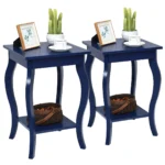 Rinkinys iš 2 šoninių staliukų 40x40x60cm, mėlynos spalvos, skirtas patogiam daiktų laikymui ir vietos taupymui įvairiose patalpose. Šie du pakopų šoniniai staliukai puikiai tinka svetainėje, miegamajame ar biure, užtikrindami prieinamą saugojimo erdvę ir patogų naudojimą kasdien.