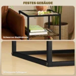 Patirkite žavesį iš dviejų dalių, daugiafunkcio HOMCOM kavos staliuko komplekto, idealiai tinkančio bet kokiam kambariui suteikti tam tikrą. Šis kavos stalo komplektas, stovintis ant pakeltų kojų su apsauginėmis pagalvėlėmis ir su unikaliu grūdinto stiklo stalviršiu, suteiks jūsų erdvei šiuolaikiškos elegancijos. Tvirtas metalinis rėmas ir metalinio stalo konstrukcija iš medžio drožlių plokštės garantuoja stabilumą ir stilingą atspalvį.