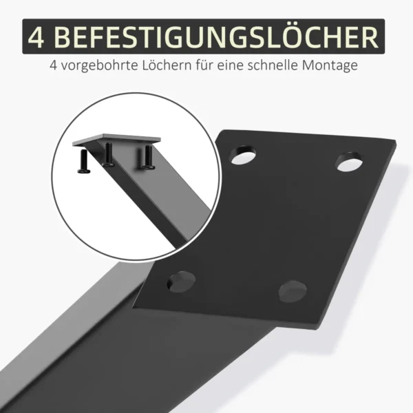 Su šiomis HOMCOM baldų kojomis galite suprojektuoti savo baldus individualiai. Šios baldų kojos gali būti naudojamos kavos staliukams, konsolėms, spintelėms ar indaujoms. Montavimas yra paprastas ir atliekamas naudojant 16 savisriegių varžtų, kurie yra įtraukti į pristatymo komplektą. Praktiškas ir nebrangus sprendimas visiems „pasidaryk pats“ projektams ir nestandartinių baldų mėgėjams.