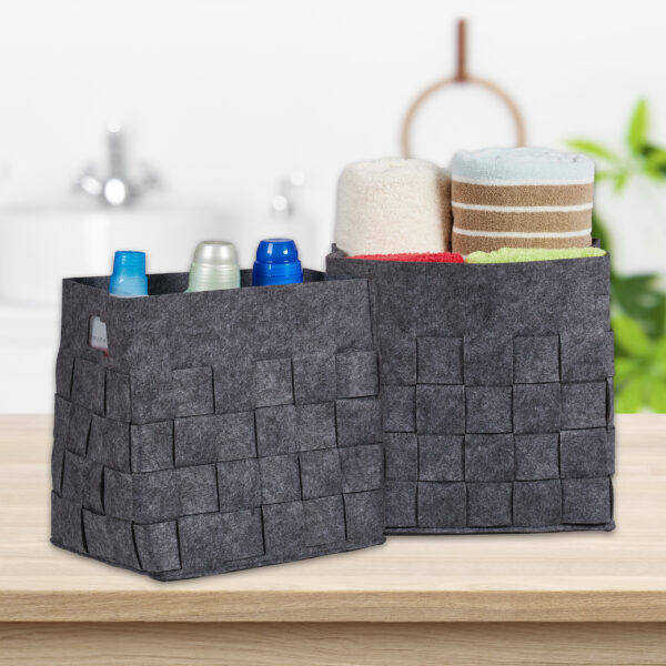 - Universalumas: Šios veltinio dėžės yra puikus pasirinkimas žaislams, vonios reikmenims ir kitiems smulkiems daiktams laikyti.