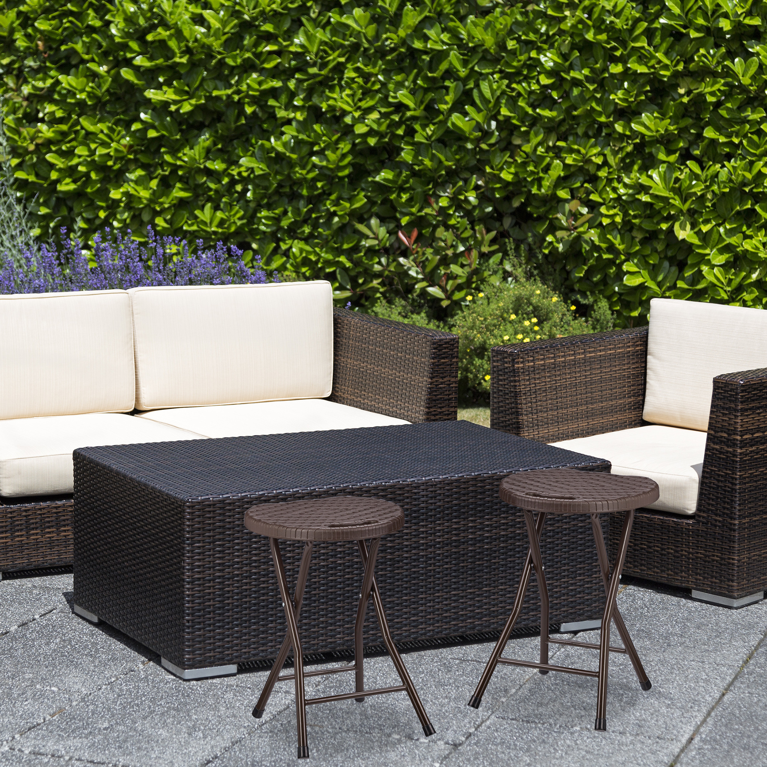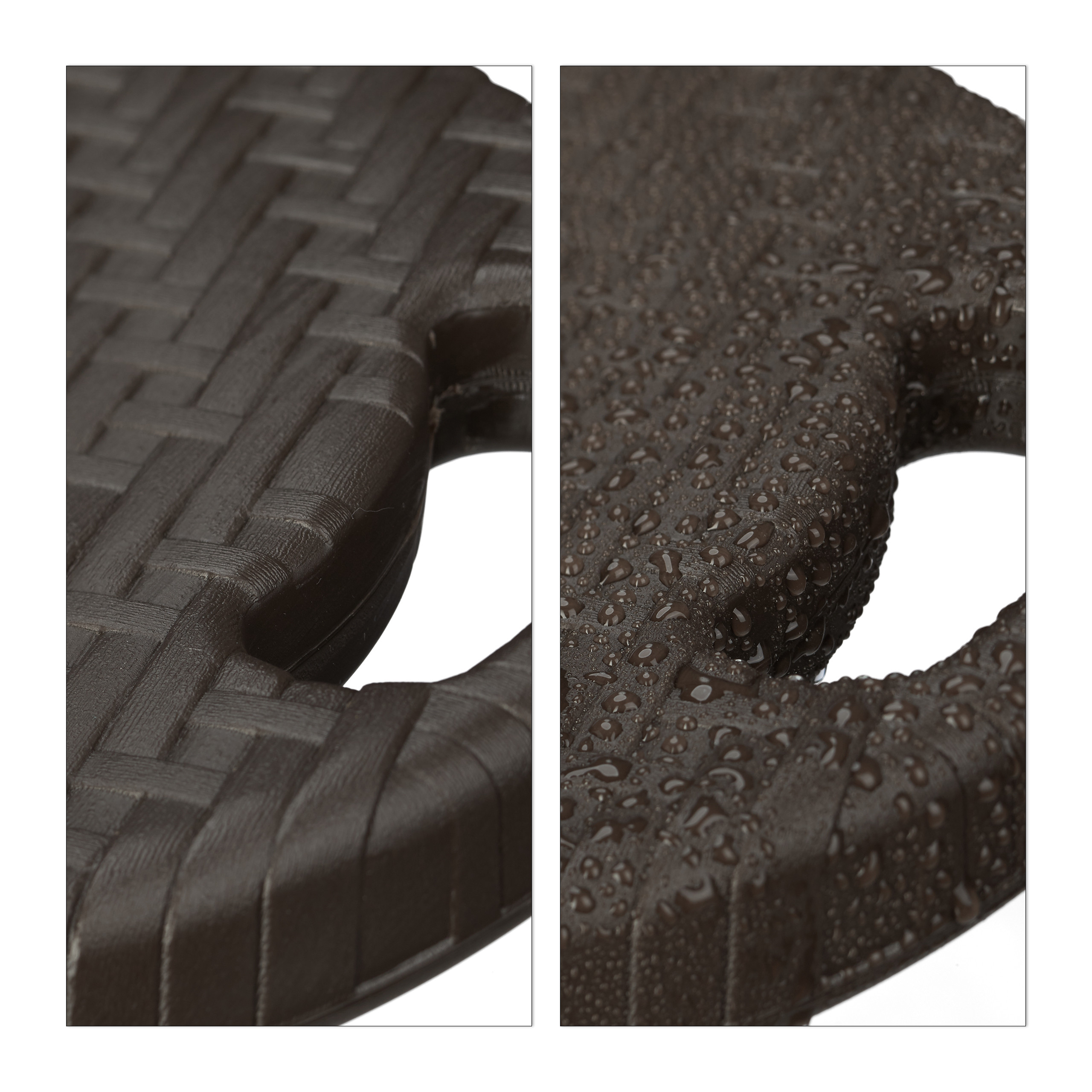- Medžiagos: Pagamintos iš patvaraus plastiko, kuris imituoja rotango tekstūrą, šios kėdės yra atsparios oro sąlygoms ir lengvai prižiūrimos.