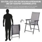 Šį stilingą kėdžių rinkinį sudaro dvi ergonomiško dizaino sulankstomos kėdės ir aukšti atlošai, kurie gali sumažinti raumenų skausmą ir įtampą. Tvirta ir lanksti medžiaga prisitaiko prie kūno ir suteikia optimalų komfortą. Visas dalis galima sulankstyti, kad būtų lengva transportuoti, laikyti ir eksponuoti, todėl tai yra puikus priedas savaitgalio išvykoms ar paplūdimio atostogoms.