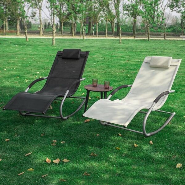 Supamos kėdės išsiskiria neįprastu, elegantišku dizainu ir dinamiška charizma, todėl jos taps matomu traukos centru jūsų sode. Pagamintos iš patvarios, orui atsparios pilkos medžiagos, jos turi funkcionalią galvos atramą ir tvirtą juodą sluoksnį ant lenktų porankių ir slidžių.