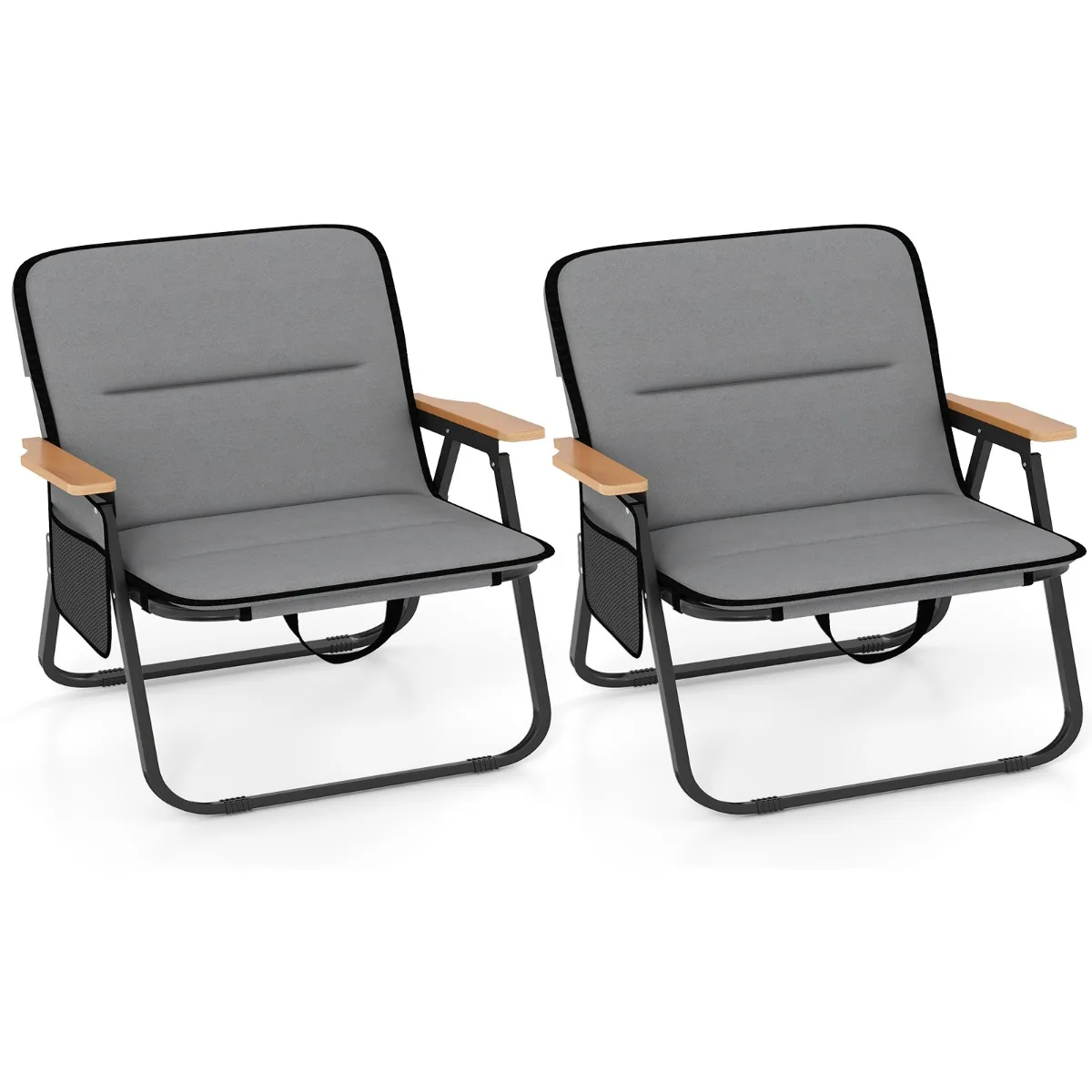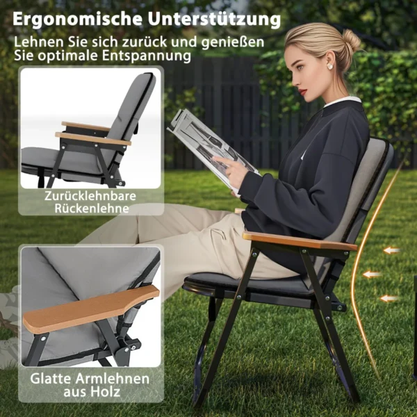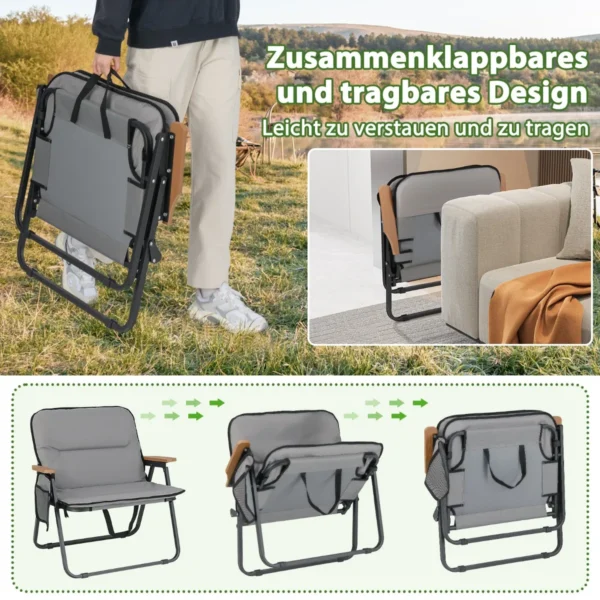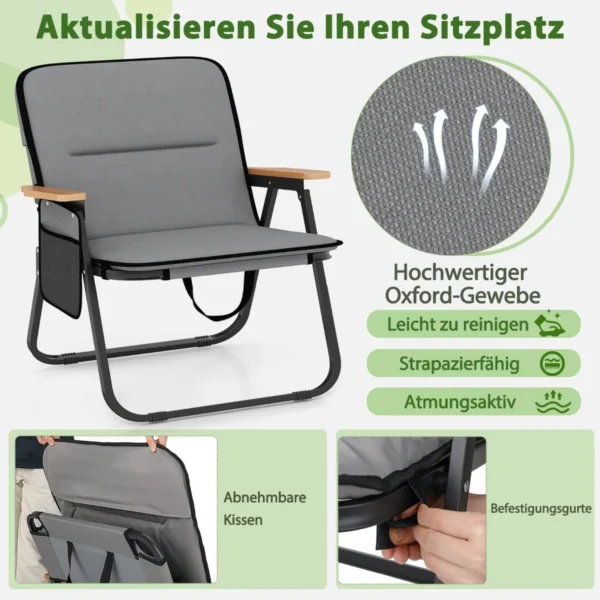 Rinkinys iš 2 turistinių kėdžių pilkos ir juodos spalvos, puikiai tinka lauko veiklai, stovyklavimui, žvejybai ar šeimos susibūrimams. Kėdės pagamintos iš patvaraus Oksfordo audinio su tvirtu metaliniu rėmu, užtikrinančiu stabilumą ir atsparumą. Sulankstomas dizainas ir nešiojimo dirželiai leidžia lengvai transportuoti bei laikyti kėdes patogiai.