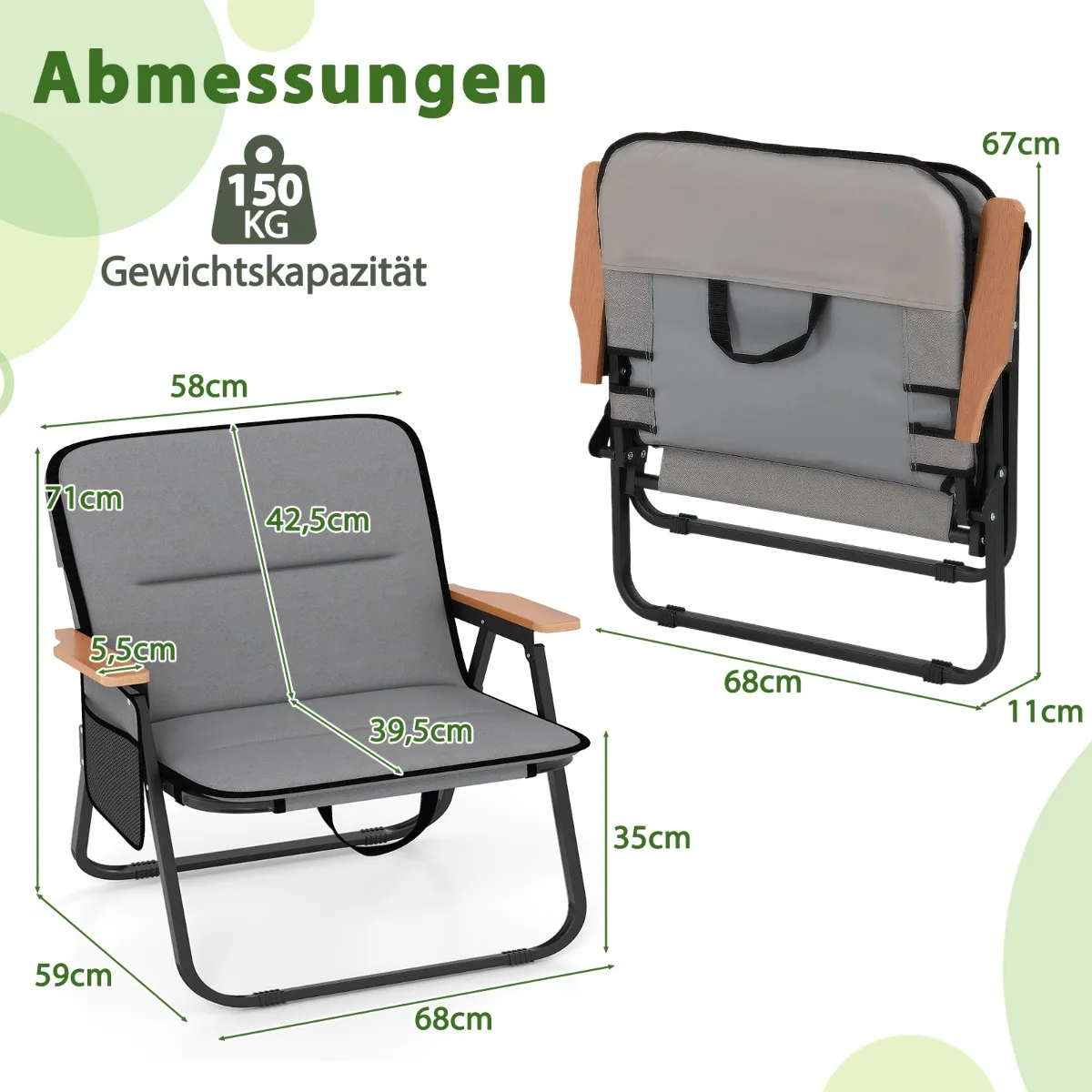 - Bendri išmatavimai: 68 x 59 x 71 cm (P x P x A)