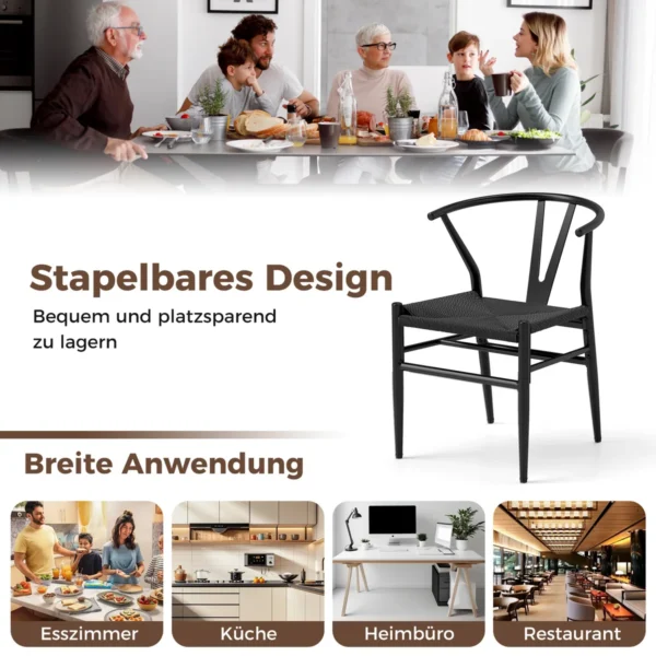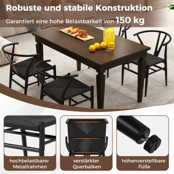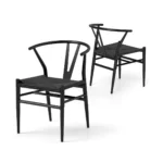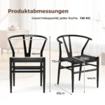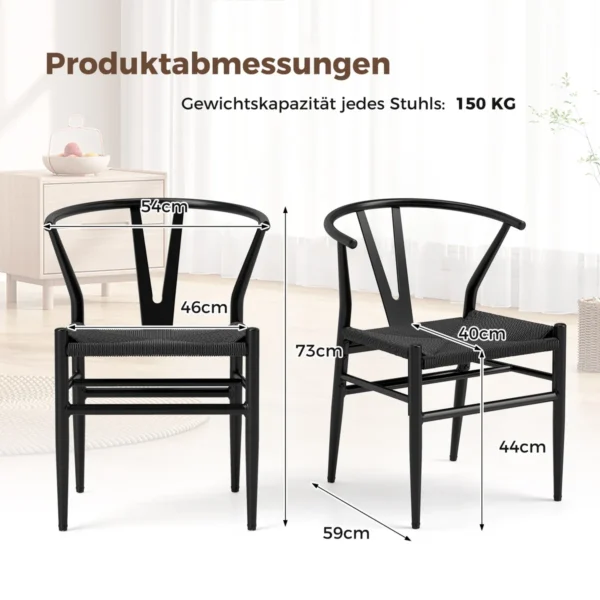 Rinkinys iš 2 valgomojo kėdžių juodos spalvos, matmenimis 54x59x73 cm, skirtas komfortiškam ir ergonomiškam sėdėjimui įvairiose patalpose. Kėdės pasižymi tvirta metaline konstrukcija bei kraftpopieriaus pintomis sėdynėmis, užtikrinančiomis gerą oro cirkuliaciją ir patogumą.